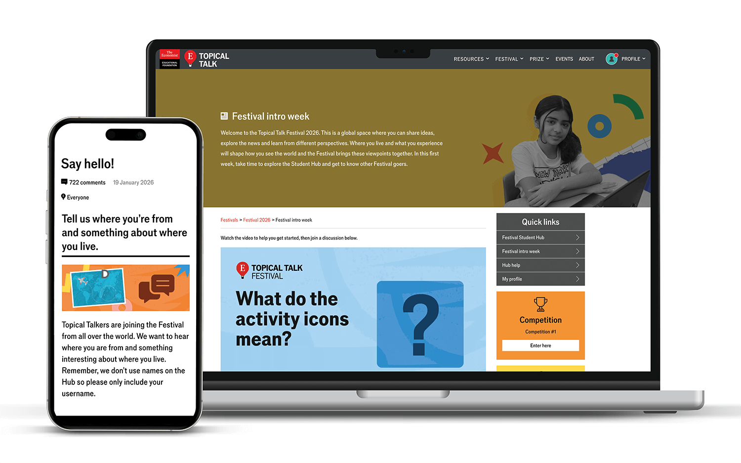 Topical Talk Festival – The world’s biggest news festival for young people. The seven-week festival offers school children the chance to connect with peers across the world, engage with leading professionals and topic experts, and gain recognition for their school on a global stage. Students work towards publishing their opinions in writing, audio journalism and film for the chance to win awards.